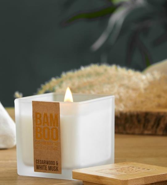 Bamboo lid makes the perfect coaster on which to sit your Bamboo candle.